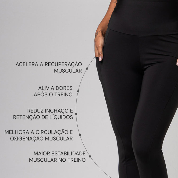A Legging Recovery com Tecnologia Flow Recovery™ acelera a regeneração muscular, alivia dores e proporciona uma sensação de leveza no corpo, permitindo treinos mais intensos e consistentes.