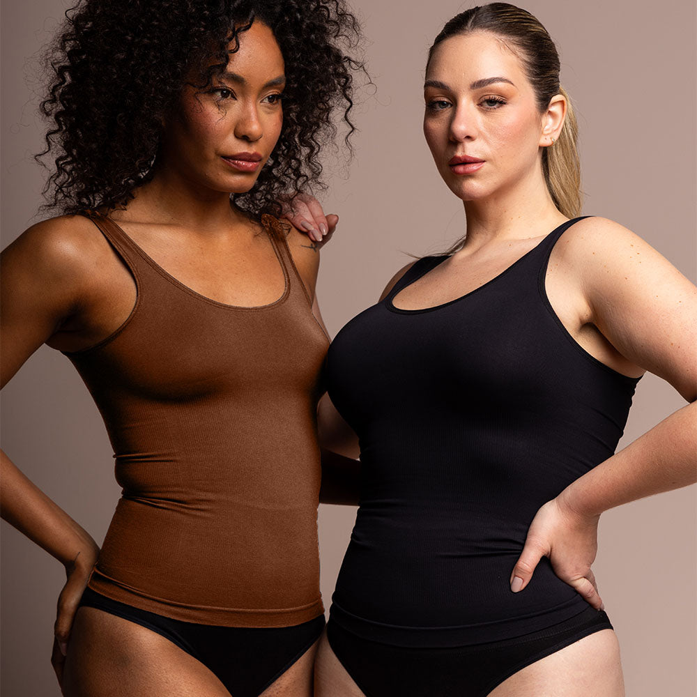 Uma cinta modeladora dentro de uma regata versátil e extremamente confortável.