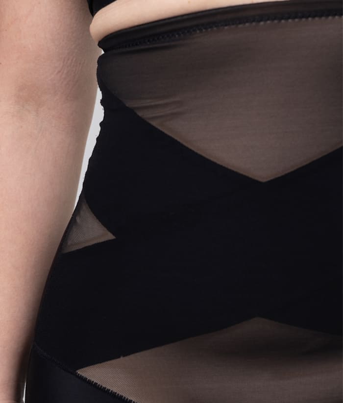 Compressão direcionada para modelar cintura e esculpir quadril e bumbum.